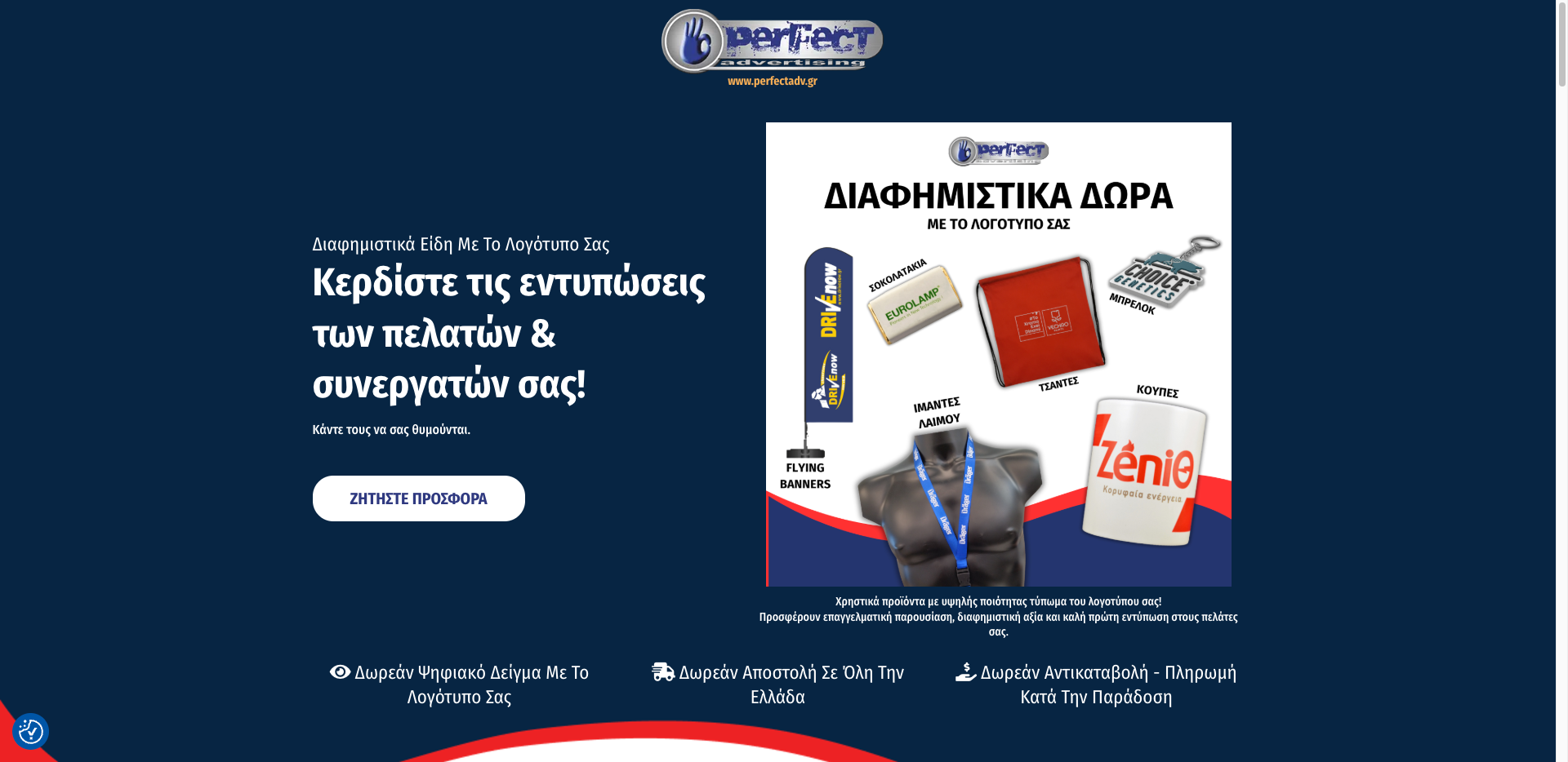 Δημιουργία Landing Page για προώθηση των διαφημιστικών ειδών της επιχειρήσης.